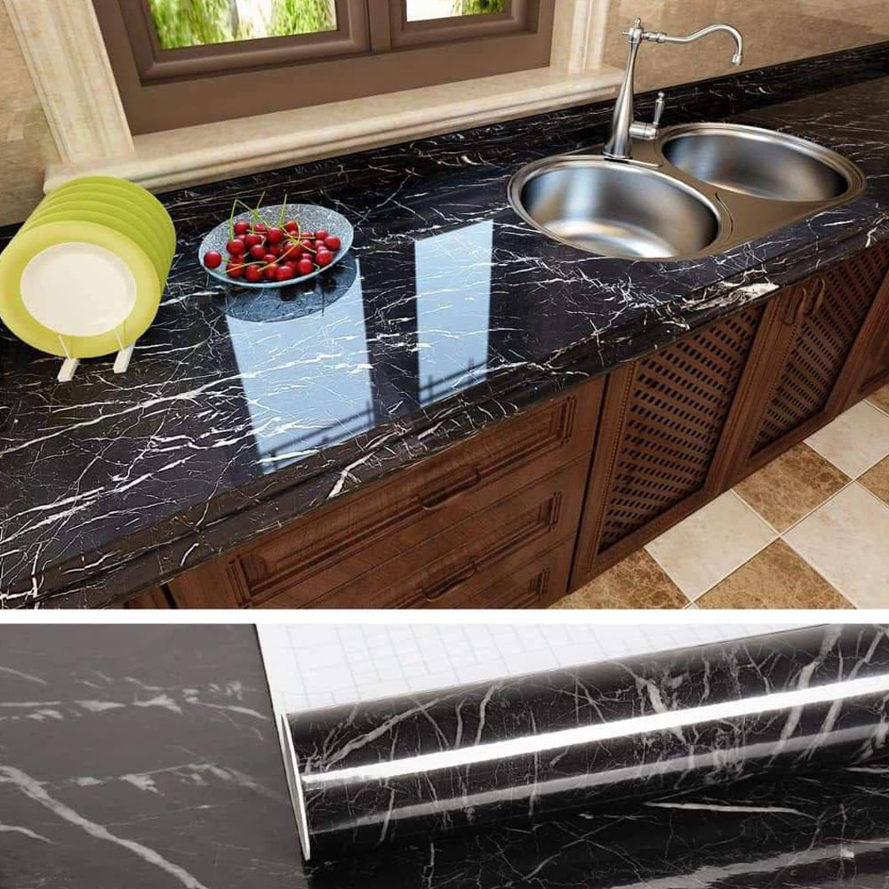 ‘- رول استيكر ماربيلا أسود ماربيلا رخامي عالى الجودة، عملي وبيضيف لمسة من الأناقة بلونه الأسود الفخم. مضاد للمياه والحرارة سهل الاستخدام وبيتميز بلاصق قوي بيدوم لفترة طويلة. ه