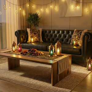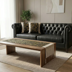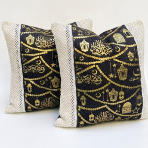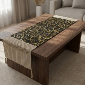 رانر طاولة مع 2 كفر كوشن – بيج × أسود بتصميم رمضاني فاخر
