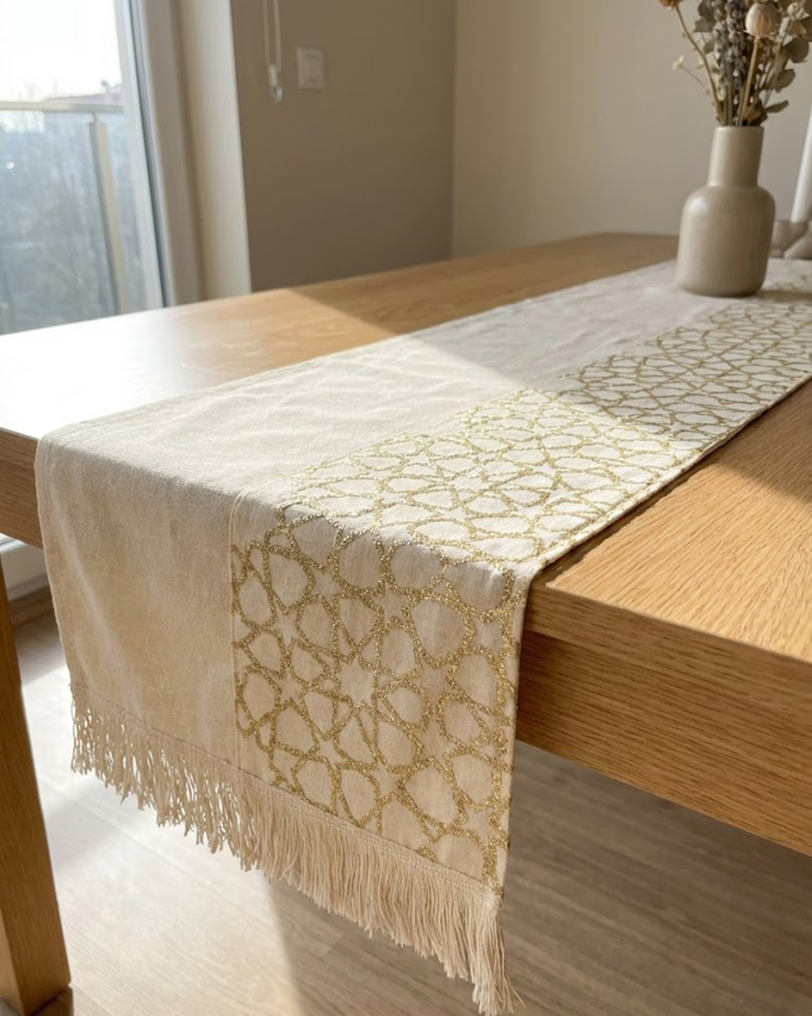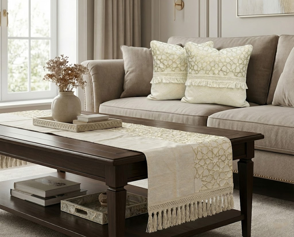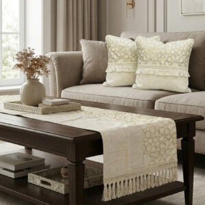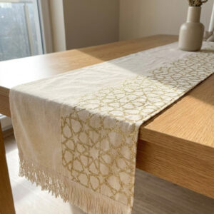 رانر مع 2 كفر كوشن بيج – نقش نجوم فخم ولمسة ديكور راقية