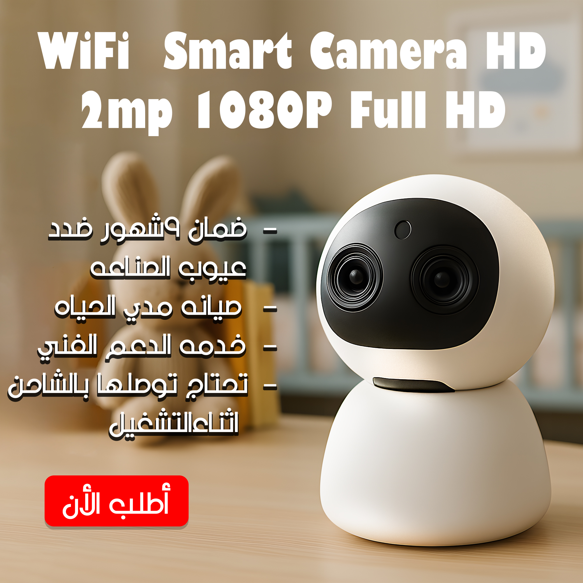 عشان أمان بيتك وولادك ميستناش، جبنالك كاميرا ذكية 1080P واي فاي، بتصور كل زاوية، حتى في الضلمة! شوف كل حاجة كأنك موجود بنفسك – اطلبها وعيش مطمن! 🔐💡 – راقب بيتك وانت مطمن! 🔒📱